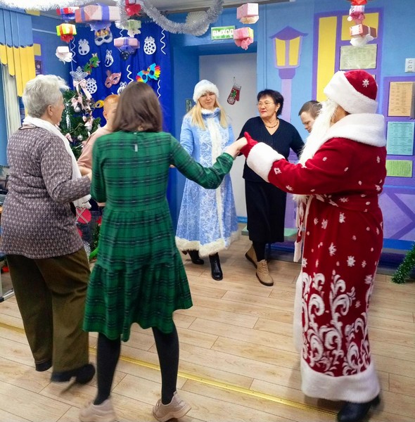 с ребятами хороводы, играли. Делились хорошим предновогодним настроением и теплом своих сердец.
